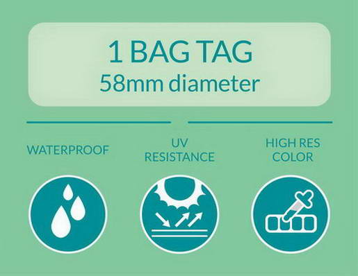 • ขนาดป้ายห้อยกระเป๋า เส้นผ่าศูนย์กลาง 58 มม.