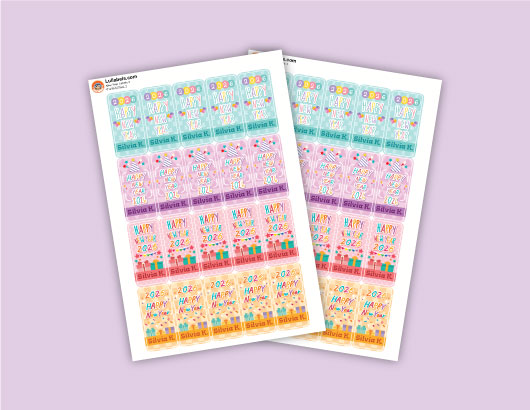 เพียงคุณใช้สติกเกอร์ป้ายปีใหม่ของเราติดลงบนของขวัญแทนการ์ดในการส่งคำอวยพรของคุณ คุณก็ไม่ต้องห่วงว่าการ์ดอวยพรหลุดหายไปจากของขวัญอีกต่อไป สติกเกอร์ป้ายชื่อของเราถูกออกแบบมาให้สามารถใส่ชื่อผู้ลงบนลวดลายที่สวยงาม โดยในแต่ละชุดจะมีสี่รูปที่แตกต่าง ป้ายชื่อของเรามีความโดดเด่น สะดุดตา สีสันสดใสทำให้สังเกตุมองเห็นได้ง่าย