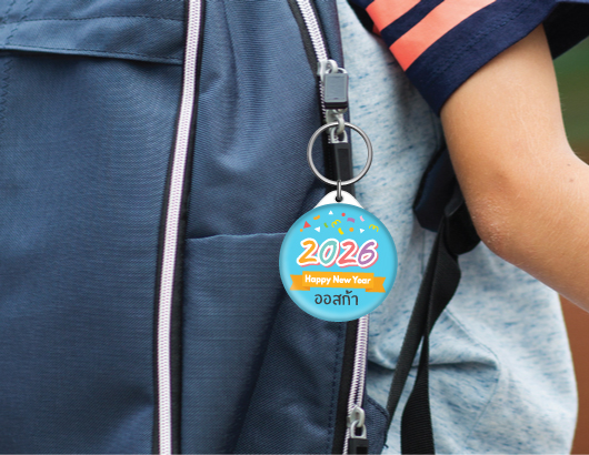 ป้ายห้อยกระเป๋าวงกลมของเราถูกออกแบบมาเพื่อใช้ติดกระเป๋าใบโปรดของน้องๆ ไม่ว่าจะเป็นกระเป๋านักเรียน กระเป๋ากีฬา หรือ กระเป๋าเดินทาง เพื่อช่วยให้เด็กสามารถจดจำกระเป๋าของตนเองได้ง่ายและแก้ปัญหากระเป๋าหายหรือสลับกันกับเพื่อน ป้ายห้อยกระเป๋าของเราเป็นพวงกุญแจรูปวงกลมขนาด 58มม.ผลิตจากพลาสติกที่มีคุณภาพสูง มีรูปแบบให้เลือกมากมาย สีสันสดใส และสามารถพิมพ์ชื่อของเด็กๆลงไปได้เลย