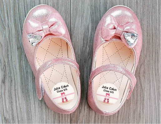 Our small round shoe labels are designed with a variety of colorful icons which help kids easily recognize them even if they can’t read their name yet. It is simply adhered to the inside heel of shoes. These waterproof labels have a strong adhesive backing and will not smudge or fade due to washing.